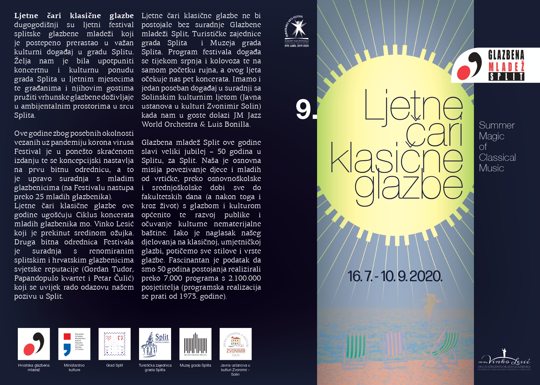 Ljetne čari klasične glazbe ne bi postojale bez pokroviteljstva Turističke zajednice grada Splita koja je prepoznala ovaj kulturni program i od početka ga podržava.